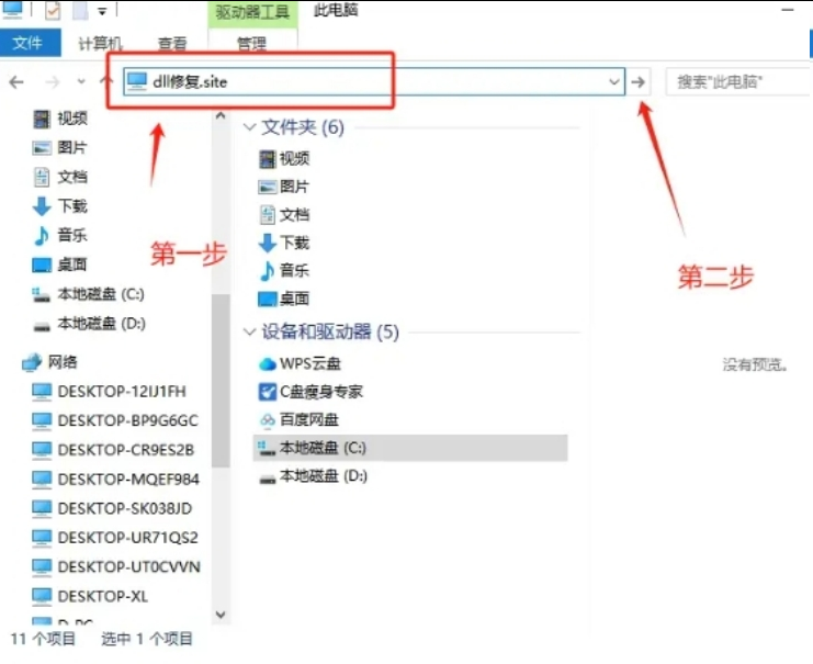 首先打开电脑,进入【此电脑】以后在顶部文件路径栏目输入:dll修复.site(鼠标移到右侧的箭头点击)或者直接点击回车键(Enter)打开检查工具。