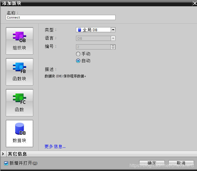 创建DB块,并创建数据类型为TCON_IP_V4的指针变量Connect,如图所示