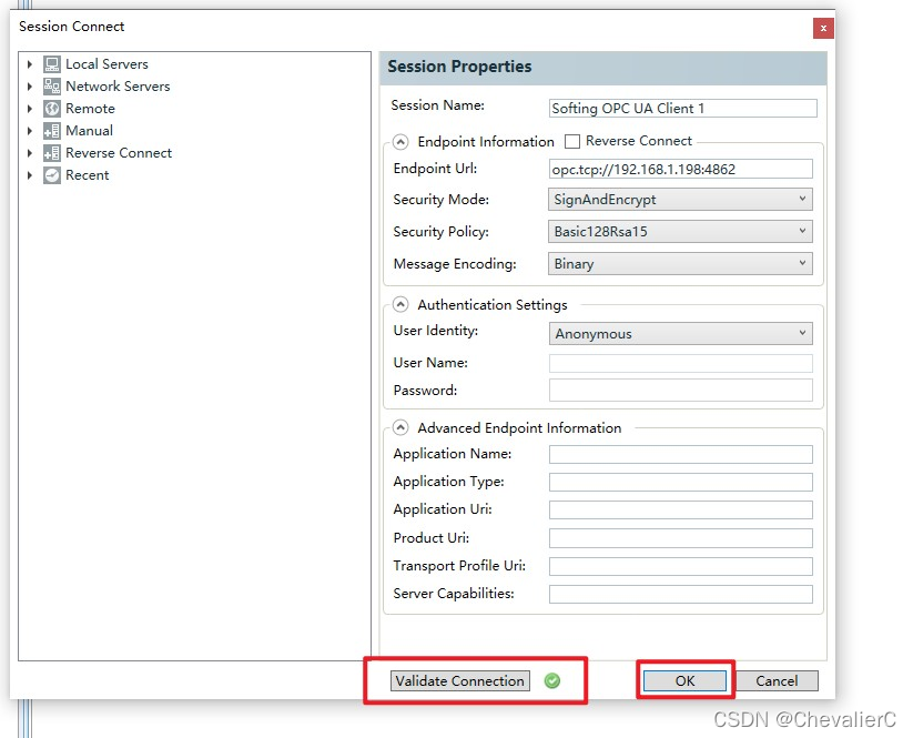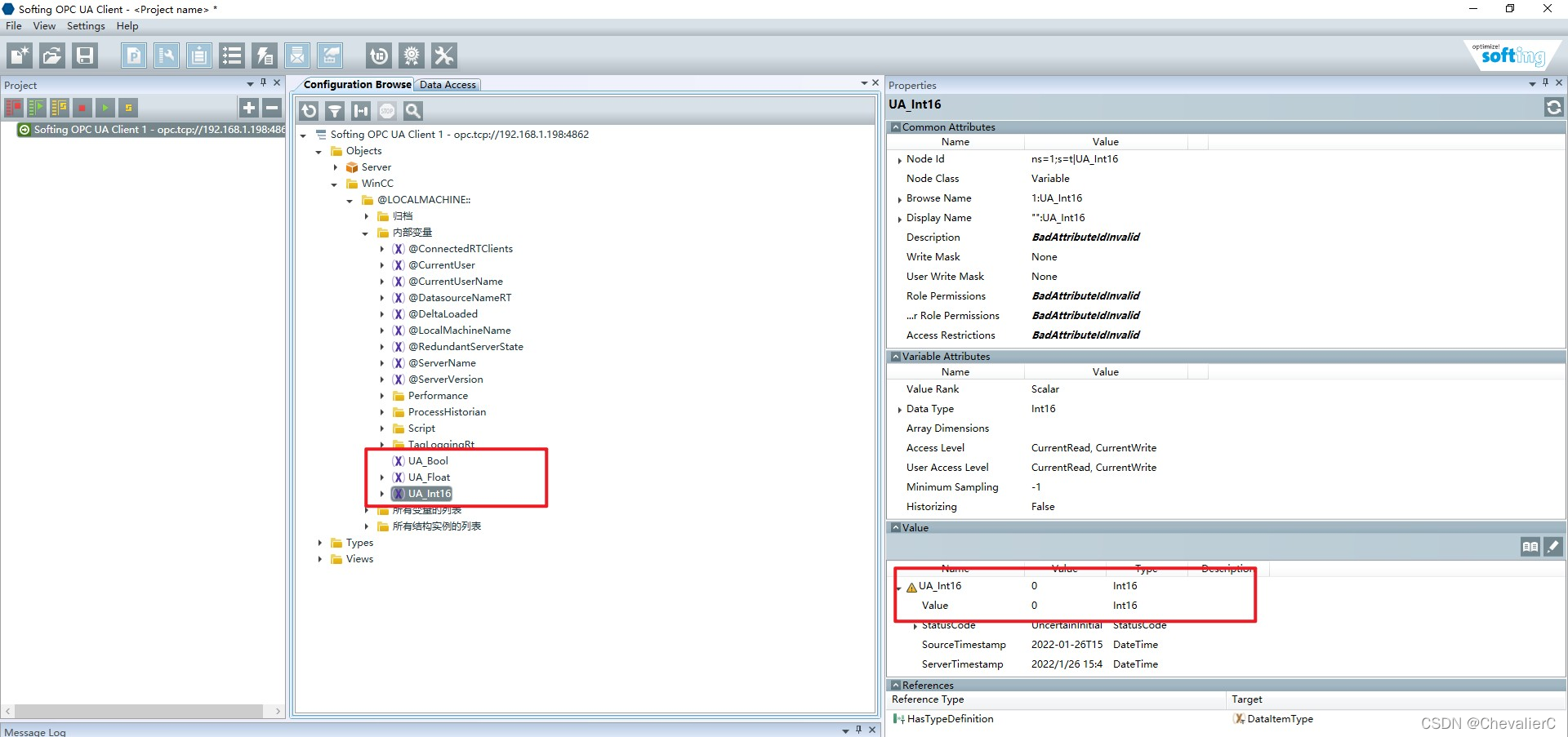 (下载地址:OPC UA-Demo-Client | Softing,也可以采用KepserverEX6软件,这里采用该软件是为了测试客户端侧向服务器测写入数据。使用Kep软件没有找到在哪里向服务器侧写入数据。