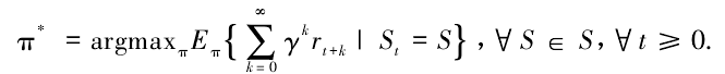 智能体根据目前的状态St,在动作空间中选择动作at,环境根据智能体做出的动作来反馈相应的奖励rt+1,并且转移到新的状态St+1,智能体根据得到的奖励调整自身策略,并针对新的状态做出新的决策。强化学习的特点是自学习和在线学习,它的目标是获取最大奖赏。