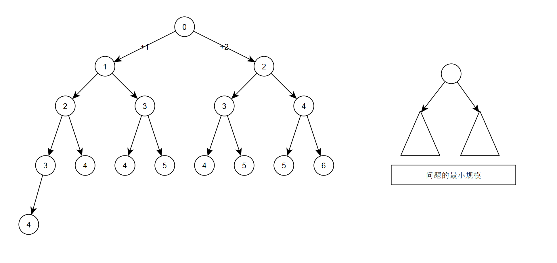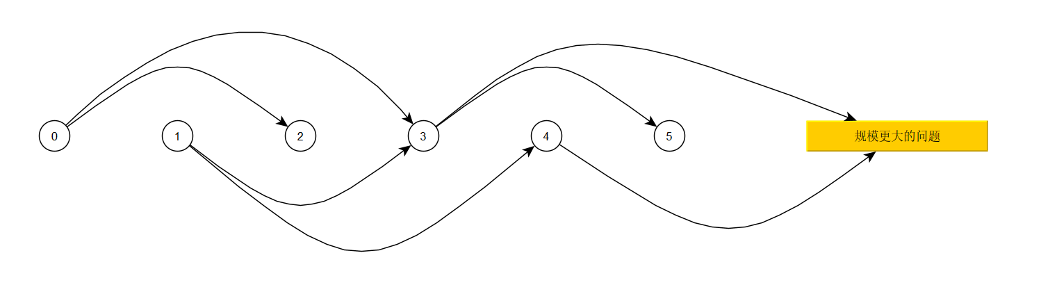 当我们把爬楼梯问题的状态转移可视化时,得到的正是一个典型的有向无环图(DAG)。这个图不仅仅是一种可视化工具,更是整个计算过程的"时空沙盘"——它同时编码了问题的时间演进和空间结构。还是那张图:
