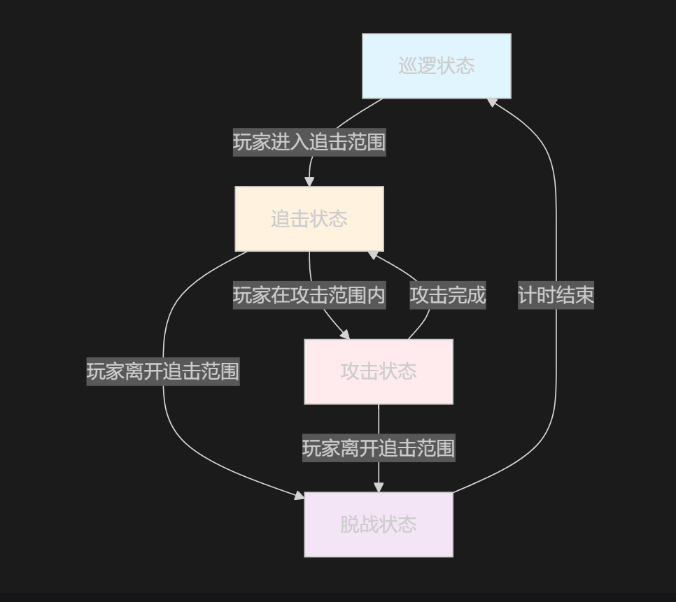 | ATTACK | attack_finished | CHASE | 攻击完成,回到追击状态 |