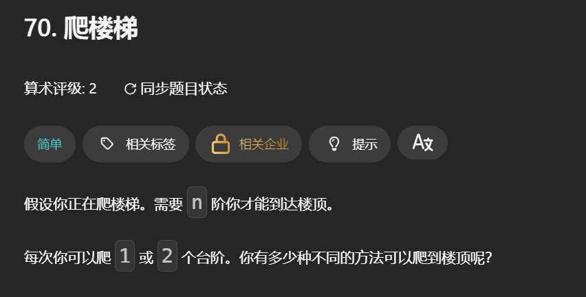 这样分解问题的方法对上到n-1、n-2级台阶也同样适用。在初始的第零阶(不走,一种方法到达)和第一阶(只走一步,也是一种方法到达)所以: