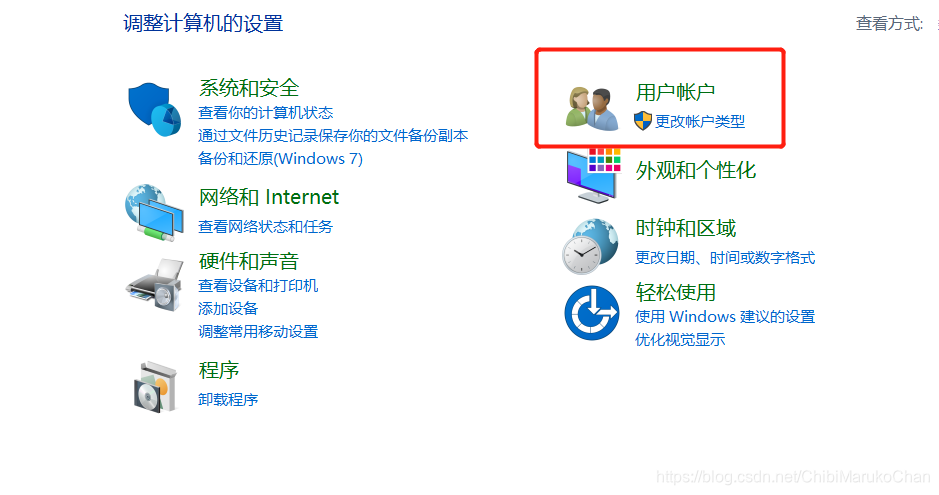 第一步:打开控制面板,选择用户账户