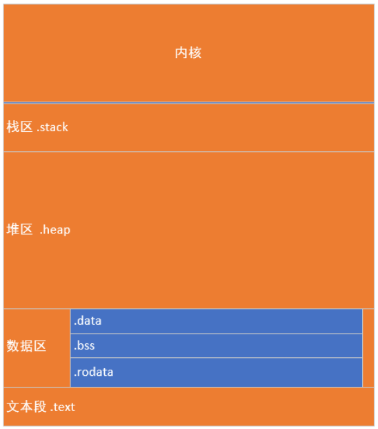 ②未初始化全局变量/静态变量区域(.bss):存放未初始化的全局变量和静态变量,在程序运行时会对.bss端初始化为0值