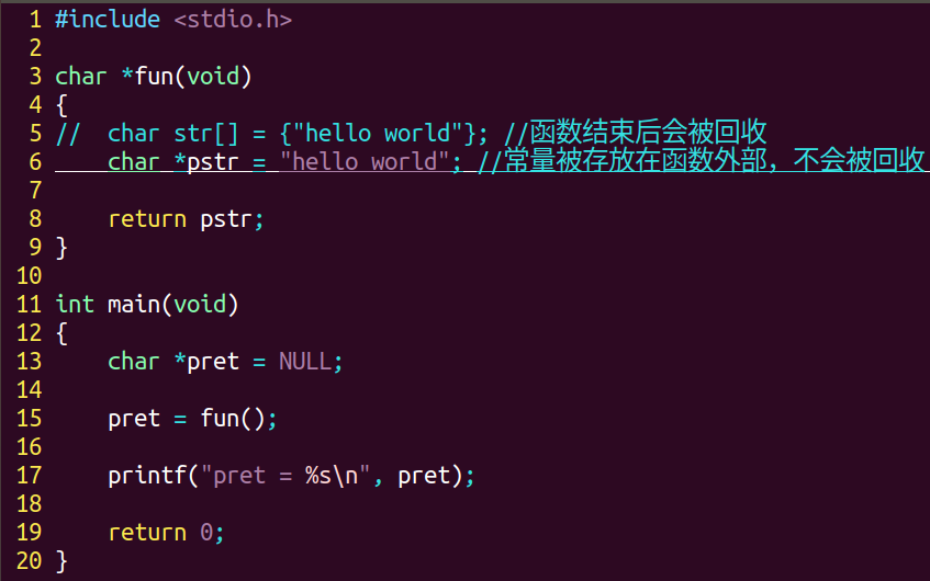 注:不能返回局部变量的地址,因为函数结束后会被回收;指针函数返回的地址可以作为下一个函数调用的参数