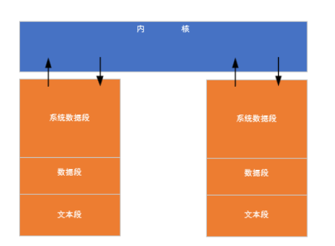进程空间是独立的,包含文本段、数据段和系统数据段
