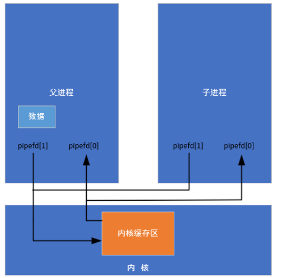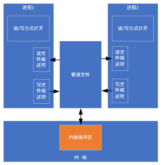 3)两个进程可以通过向管道文件中读写数据实现进程的通信