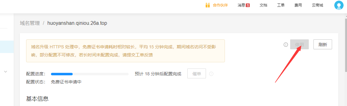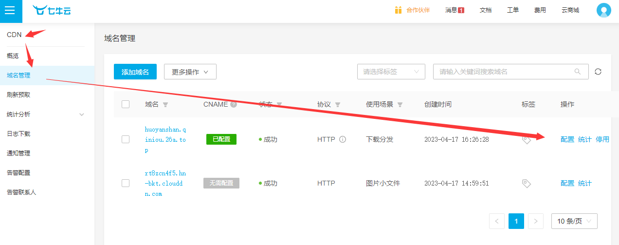 - 进入七牛云-控制台-CND -域名管理