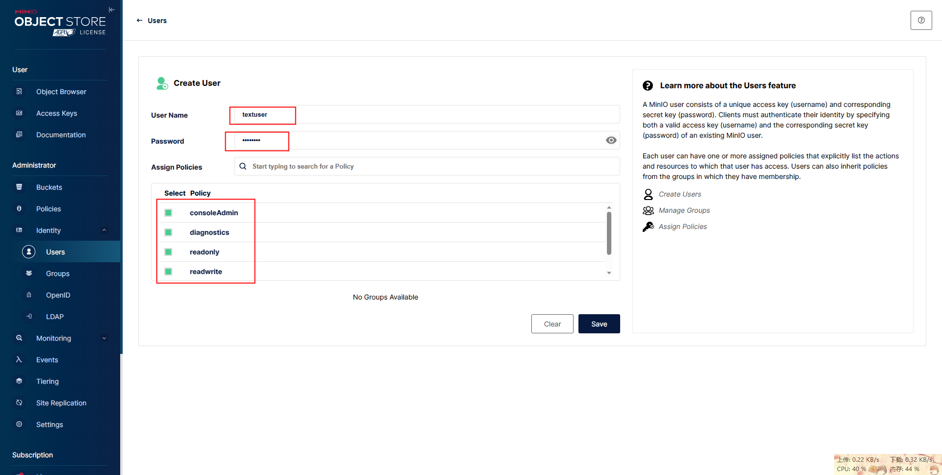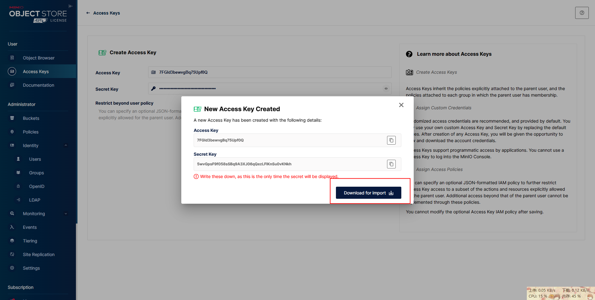 - MINIO_SECRET_KEY :密码(账号长度必须大于等于5,密码长度必须大于等于8位)
