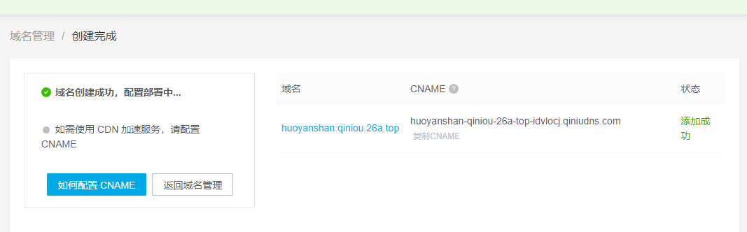 - 添加完3分钟左右,可以尝试在七牛云后台点击验证