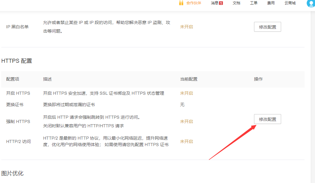 - 然后点击修改配置,打开HTTPS配置开关