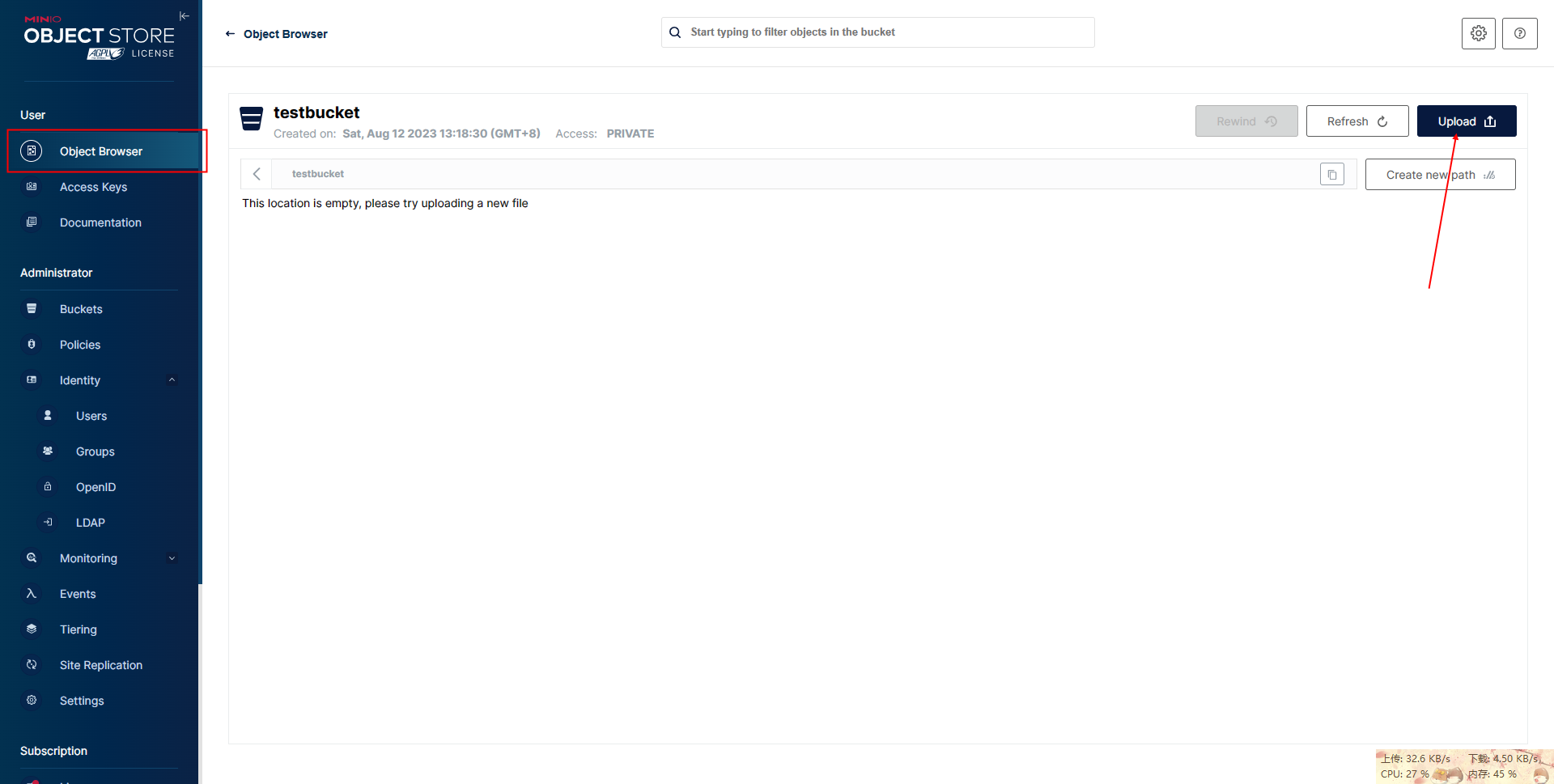 - 桶内数据已上传