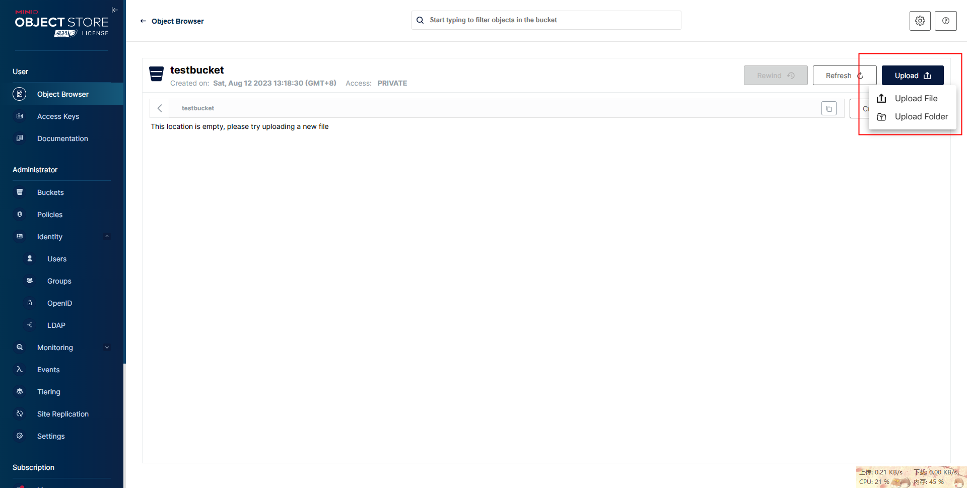 桶:>> 'testbucket' 已存在!