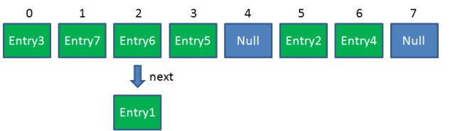 table[bucketIndex] = new Entry<K,V>(hash, key, value, e);