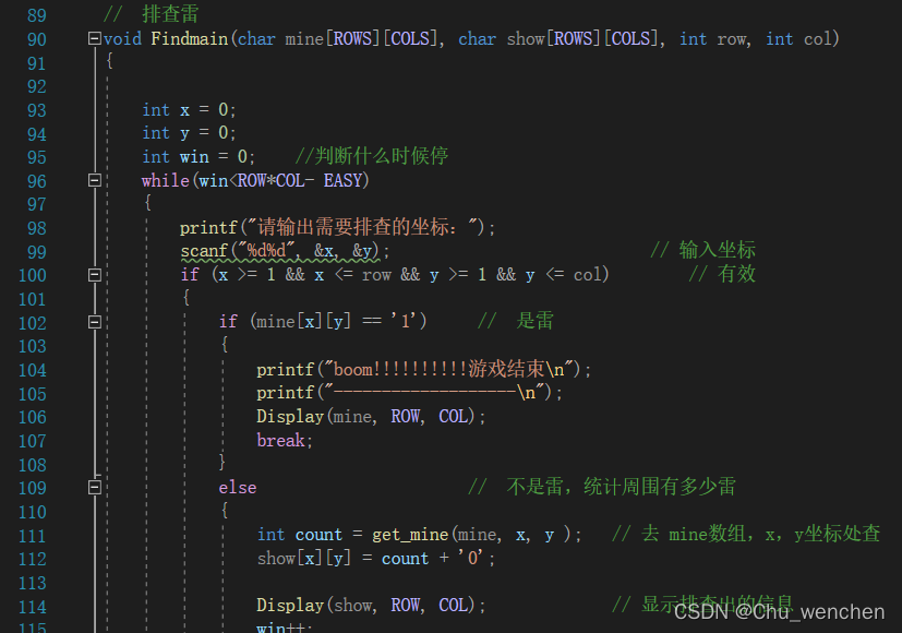 这里get_mine函数只是作为Findmain中的一步,所以并没有放在game.h文件中定义