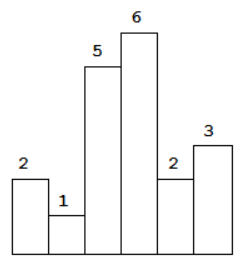 以上是柱状图的示例,其中每个柱子的宽度为 1,给定的高度为 [2,1,5,6,2,3]。