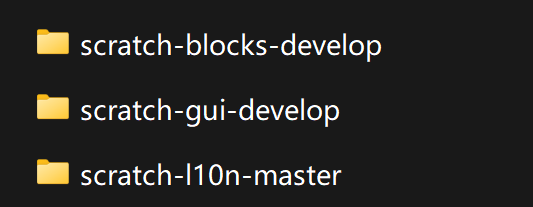 scratch-gui所依赖的子模块,比如scratch-vm、scratch-blocks等等(见上文源码结构图),都会在这一步自动安装。