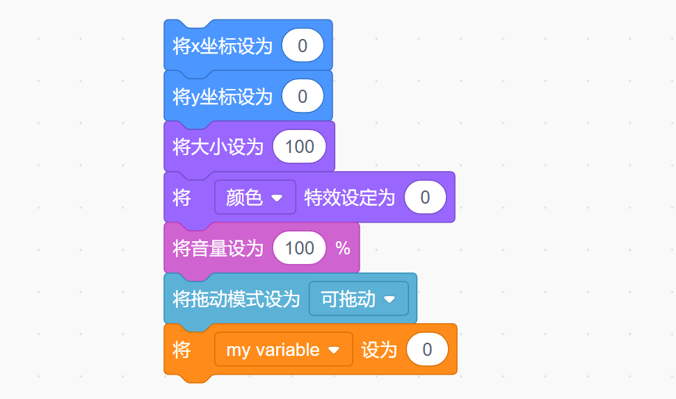 为了强化孩子们对“变量赋值”的抽象理解,我决定与下面这些赋值的指令积木统一翻译风格: