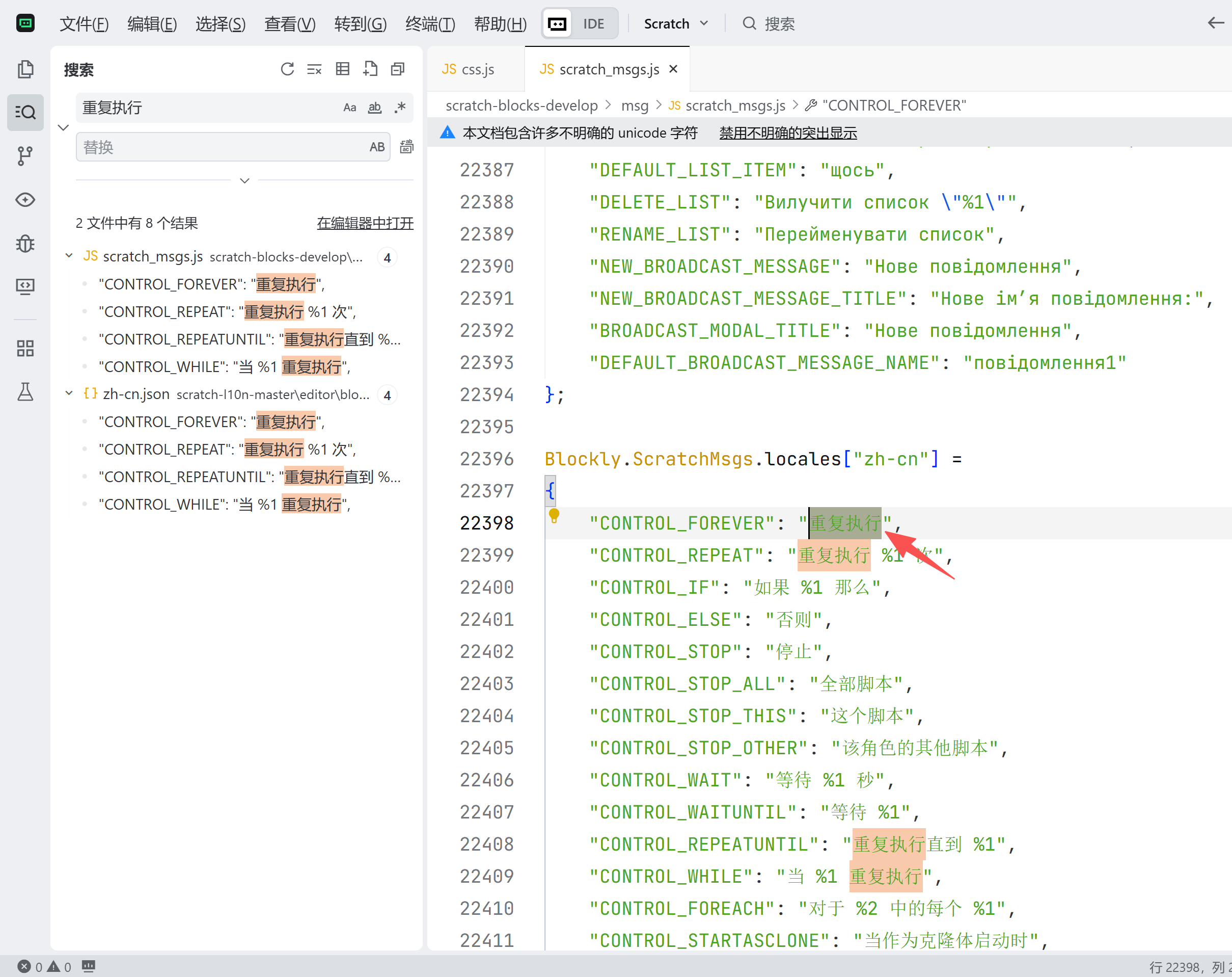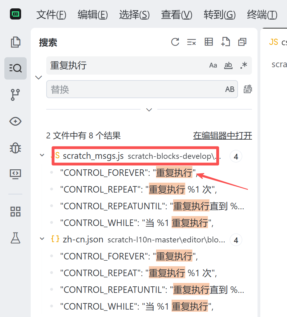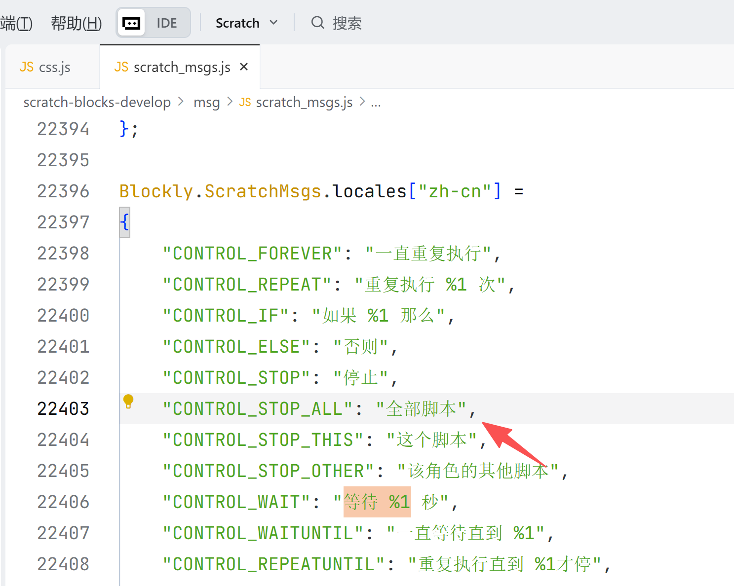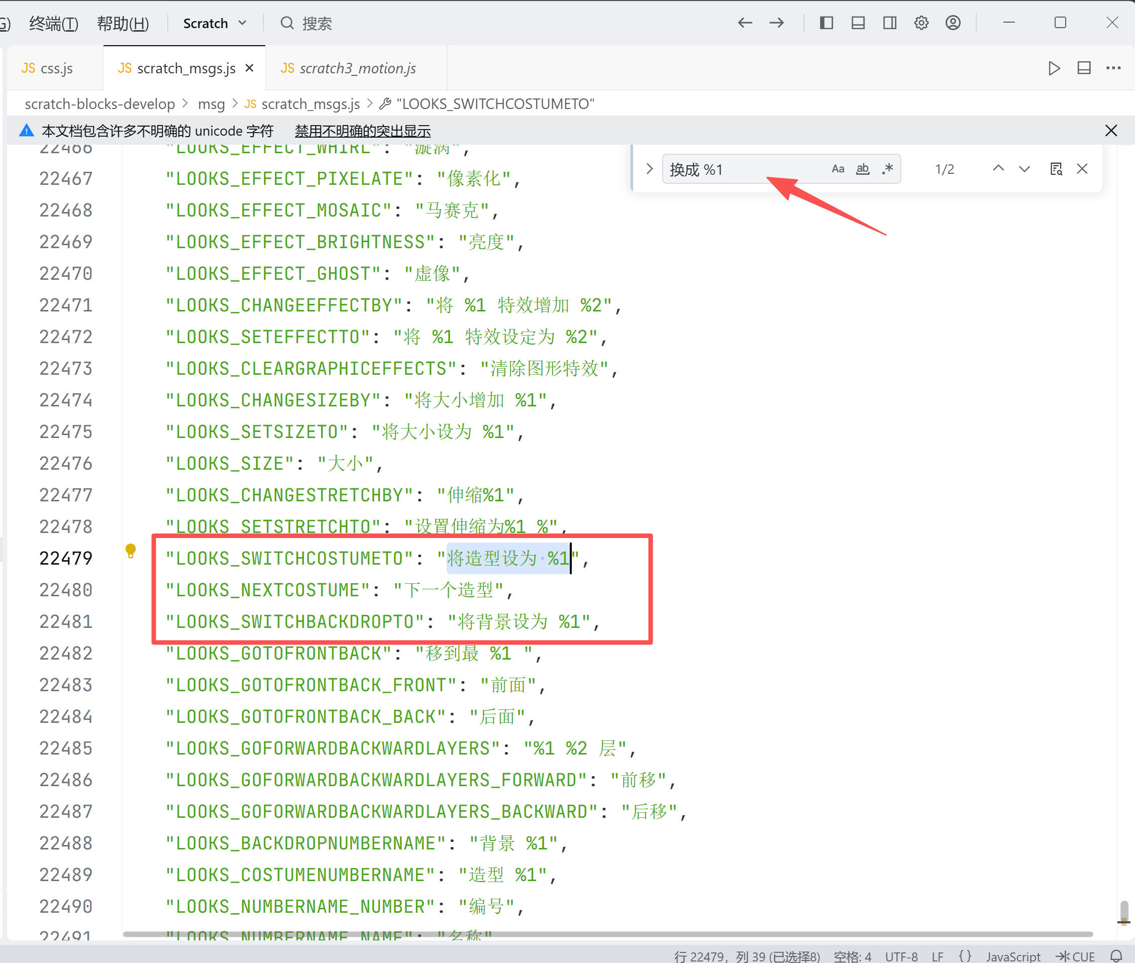 在`scratch-blocks-develop\msg\scratch_msgs.js`中查找`换成 %1`。