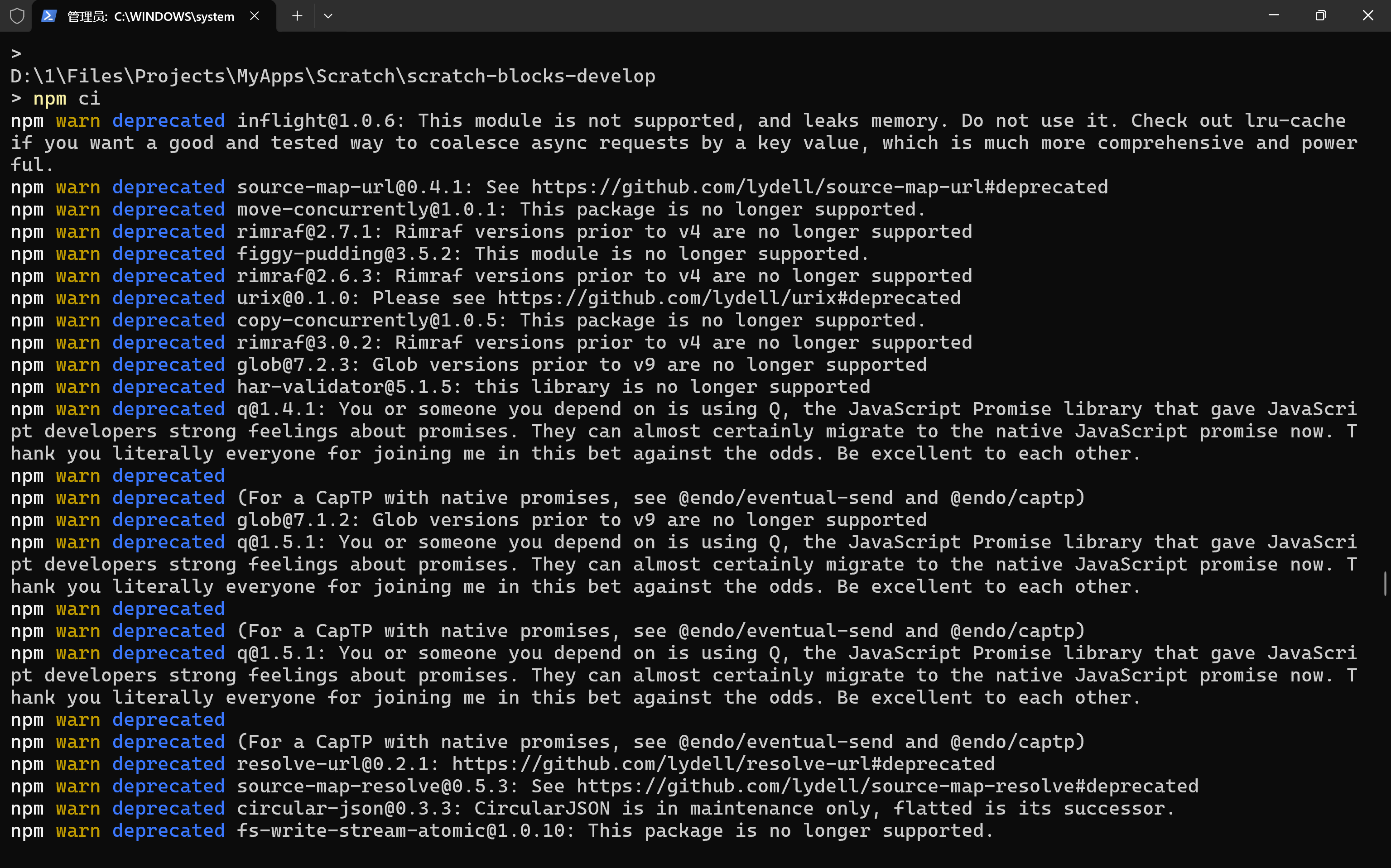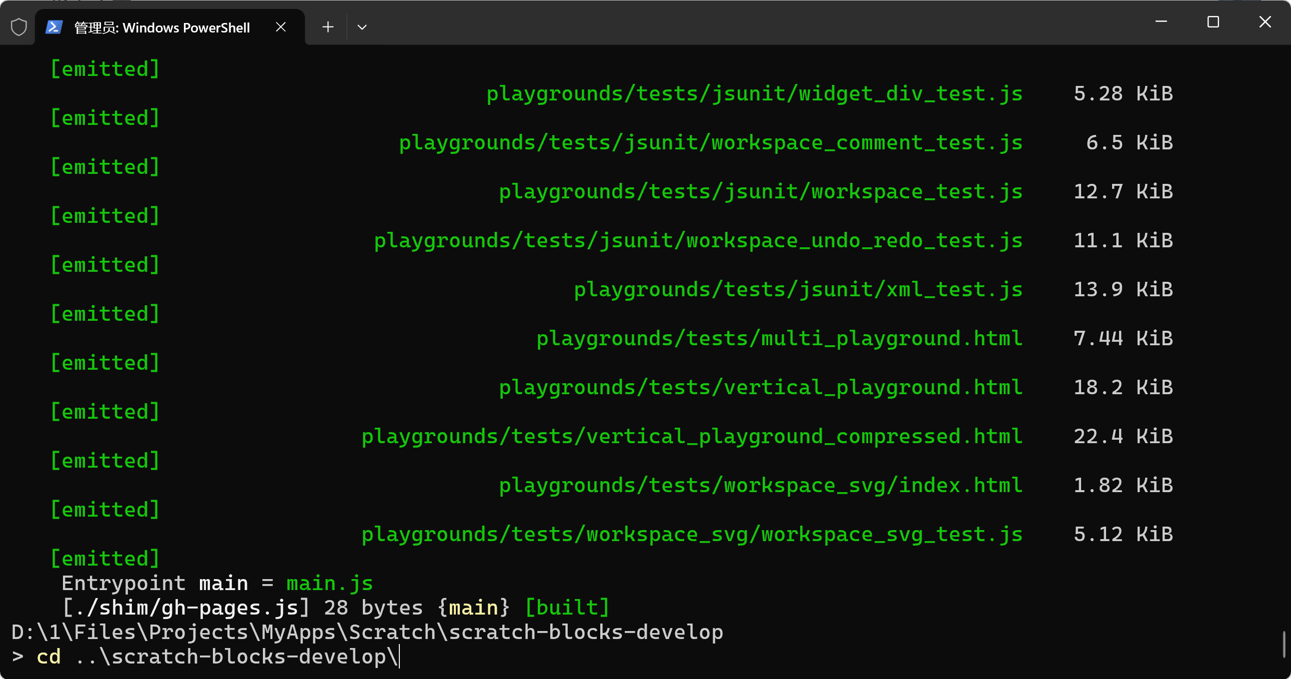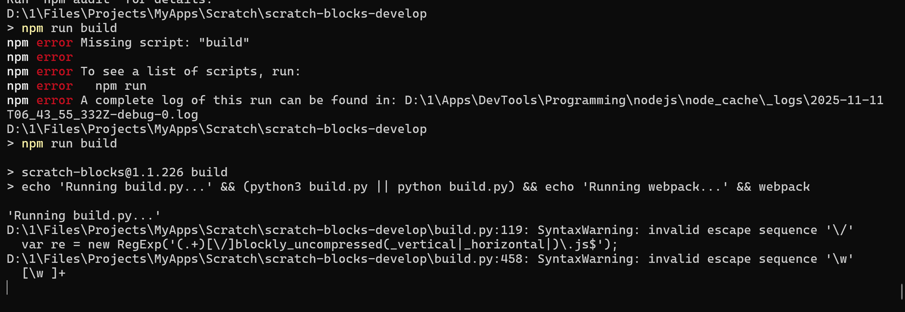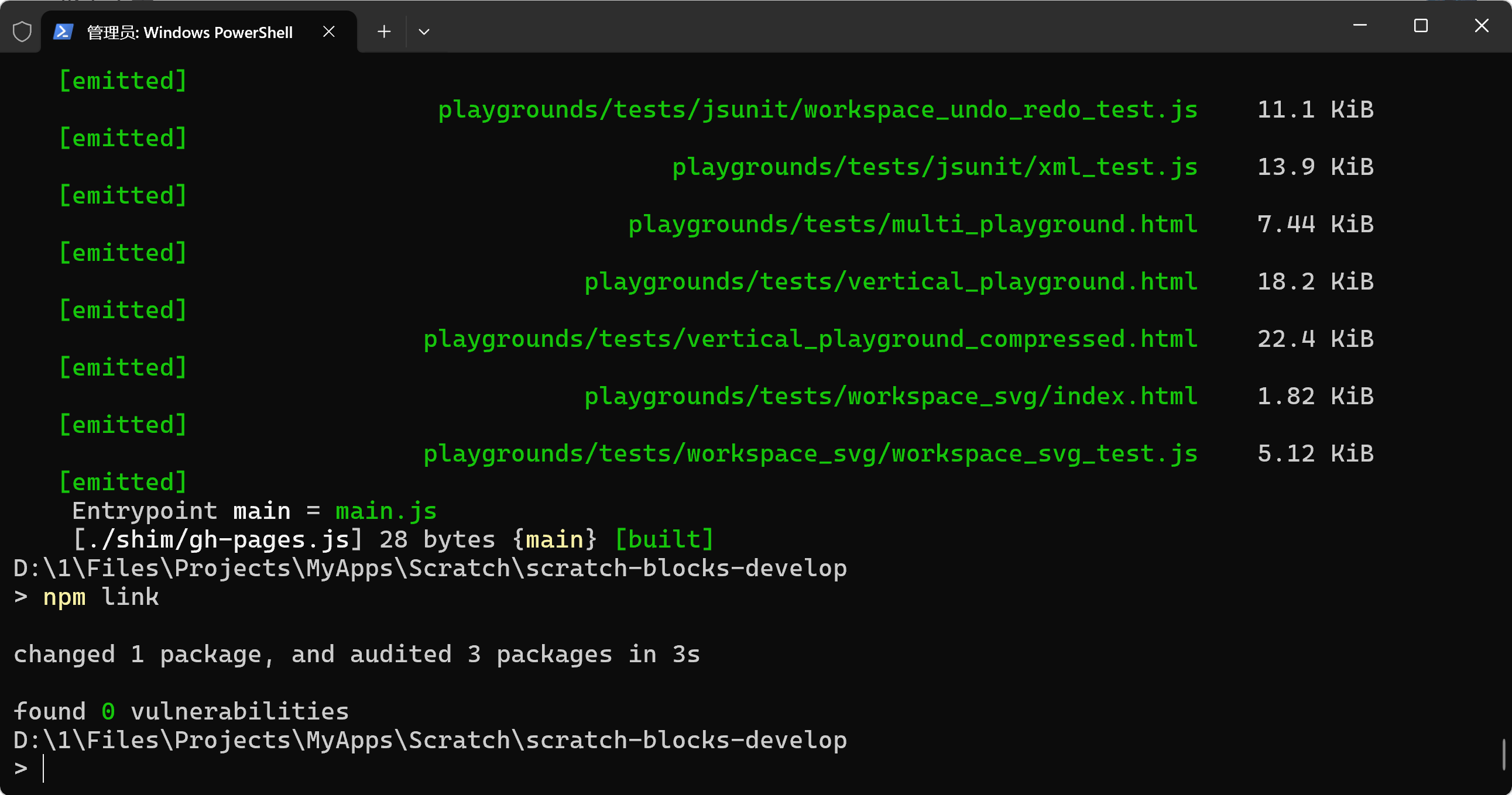 `npm ci`或`npm install`执行后`scratch-blocks`的文件都完整了,接下来需要编译。