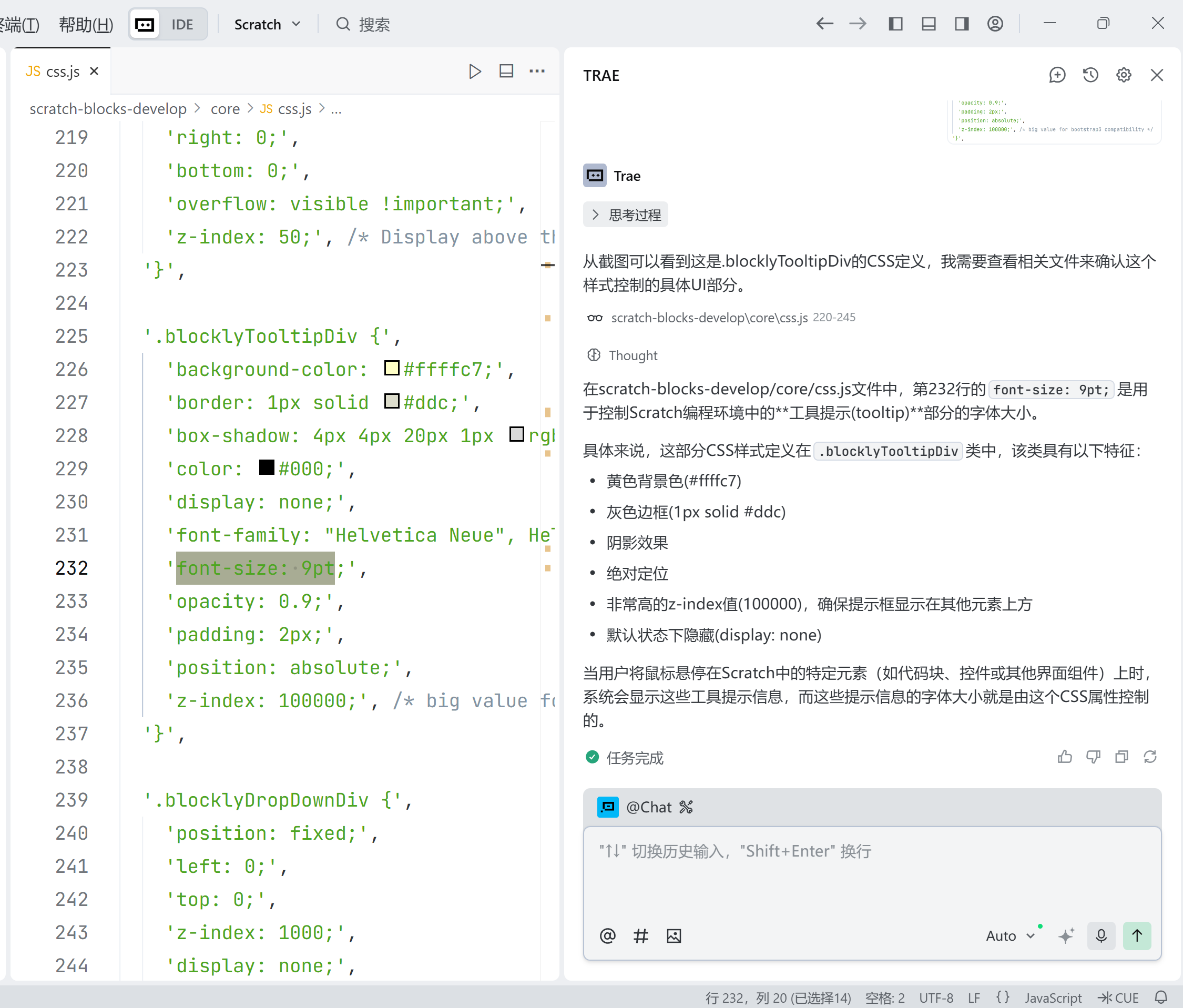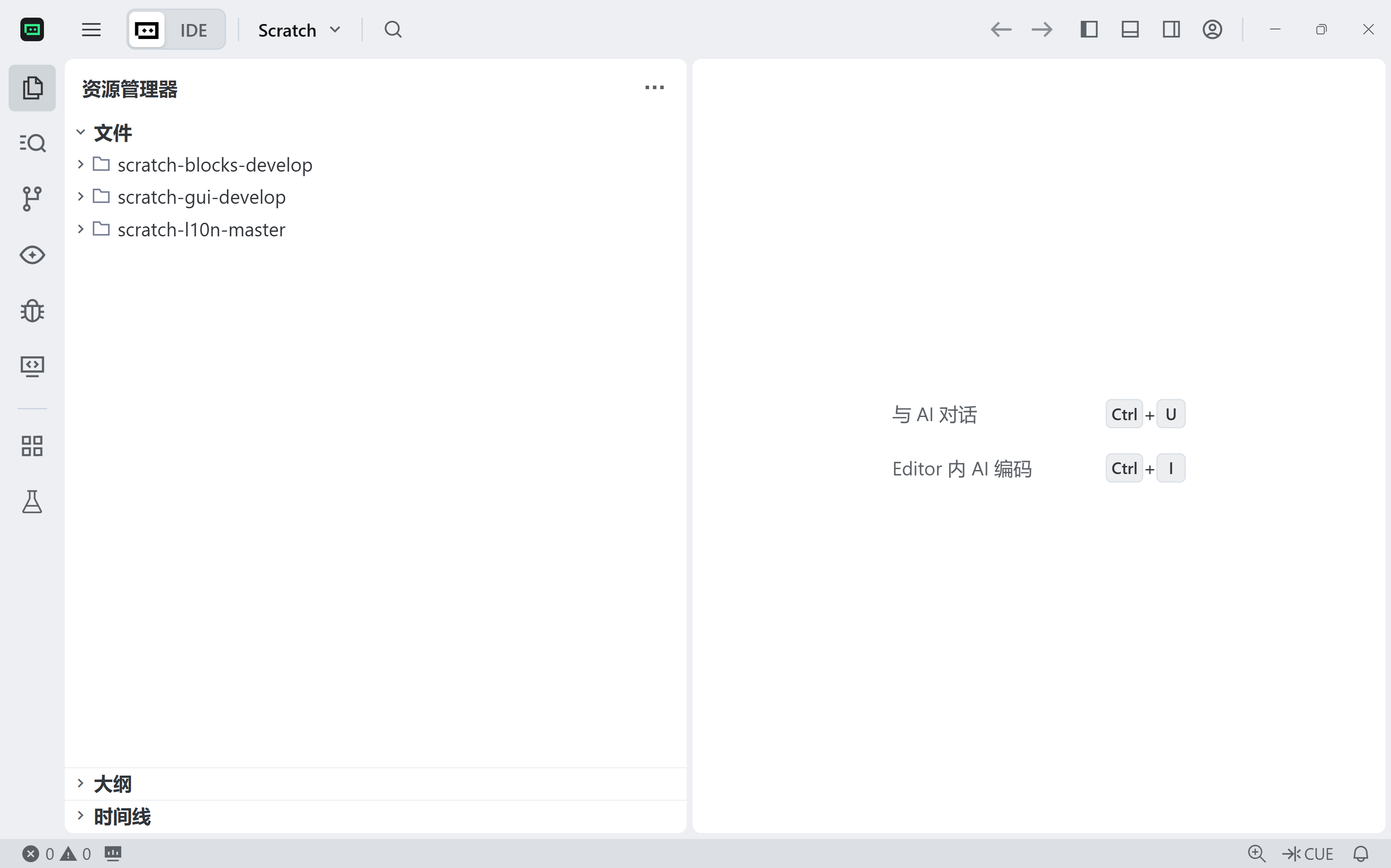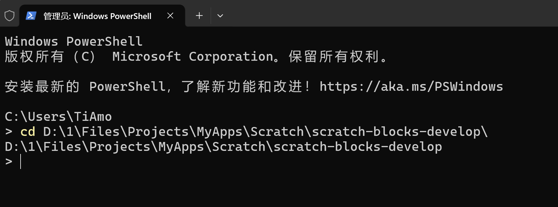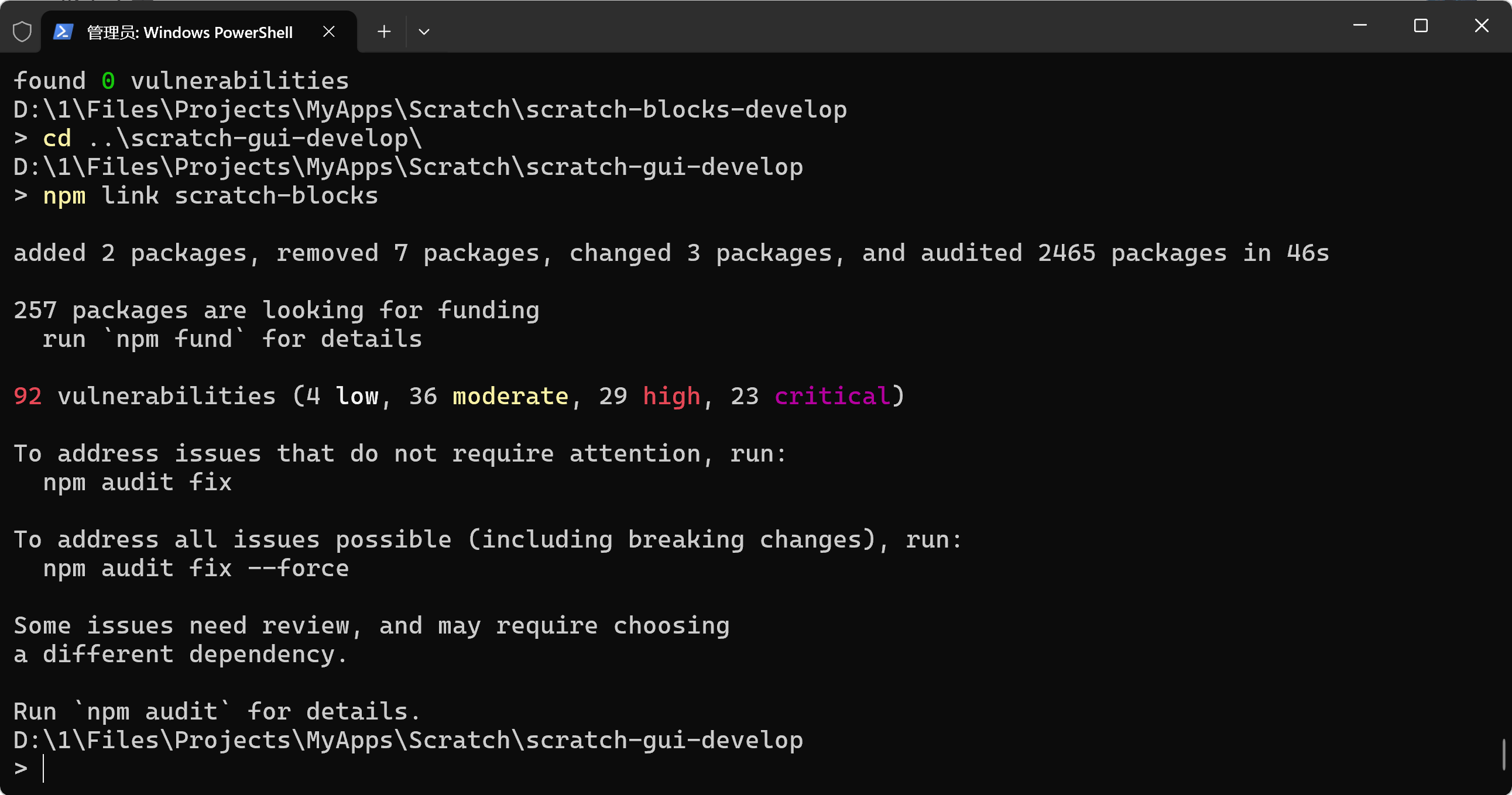 我们之前把`scratch-blocks`源码解压到本地后并没有对他进行任何操作,此时的`scratch-gui`使用的是从Scratch官网下载的`scratch-blocks`,并没有使用我们本地的源码。
