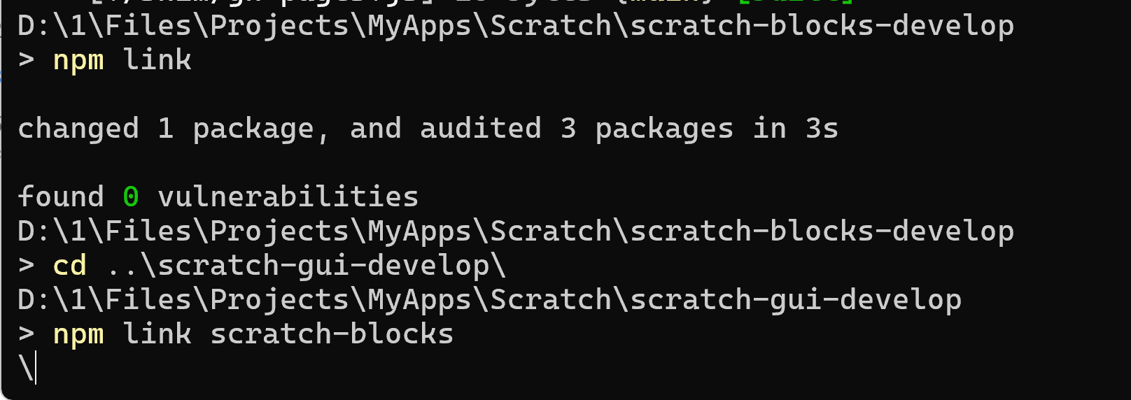 3.4 连接本地`scratch-gui`和本地`scratch-blocks`