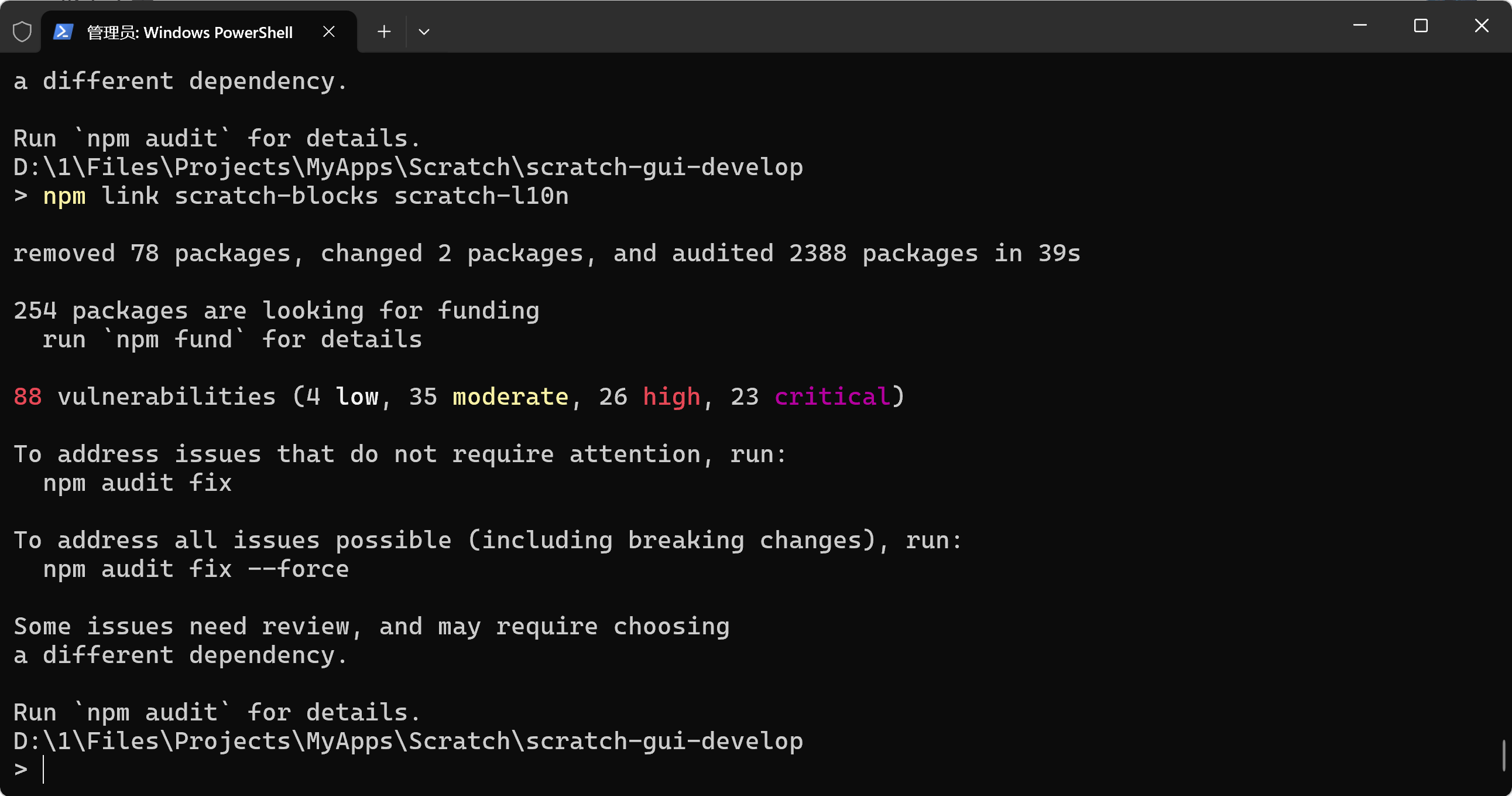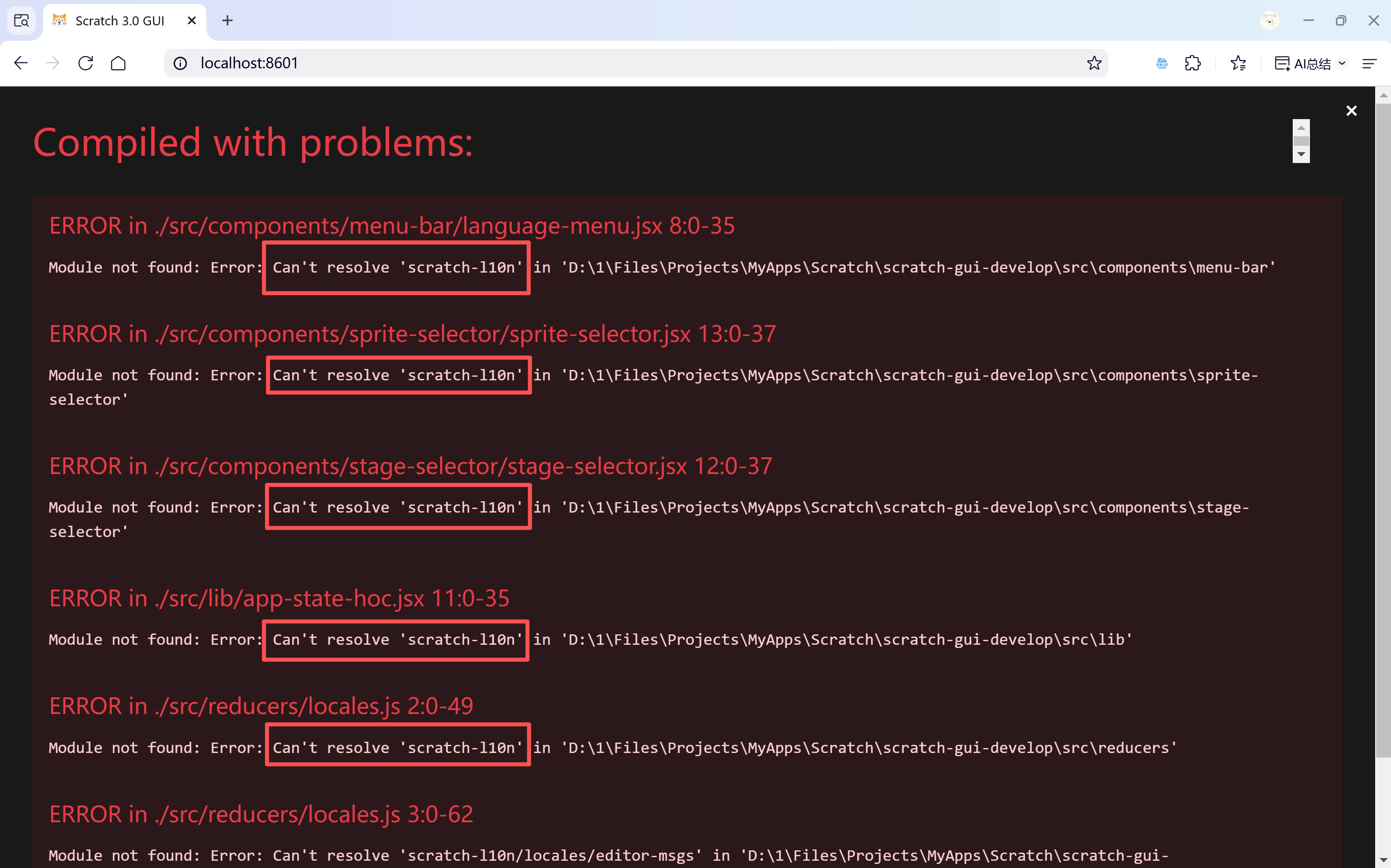 我们在【Scratch二次开发#2——自定义菜单栏】中编译`scratch-l10n`时也有遇到类似问题。