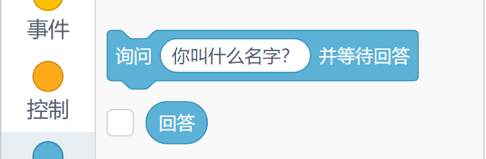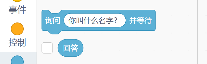很多低龄的小朋友初学编程时不理解`询问并等待( )`与`回答`的配对关系。