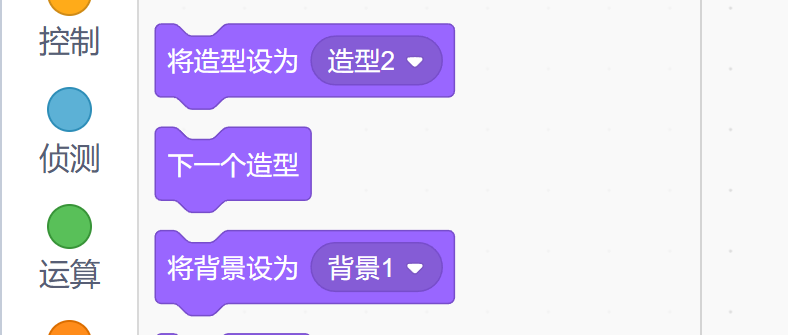 “换成 %1 背景并等待”与“当背景换成 %1”是一对配对积木,这两个我就不改了。