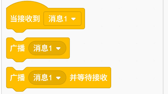 我决定改为“广播消息( )并等待接收”,这样就可以和“当接收到【】”配对。