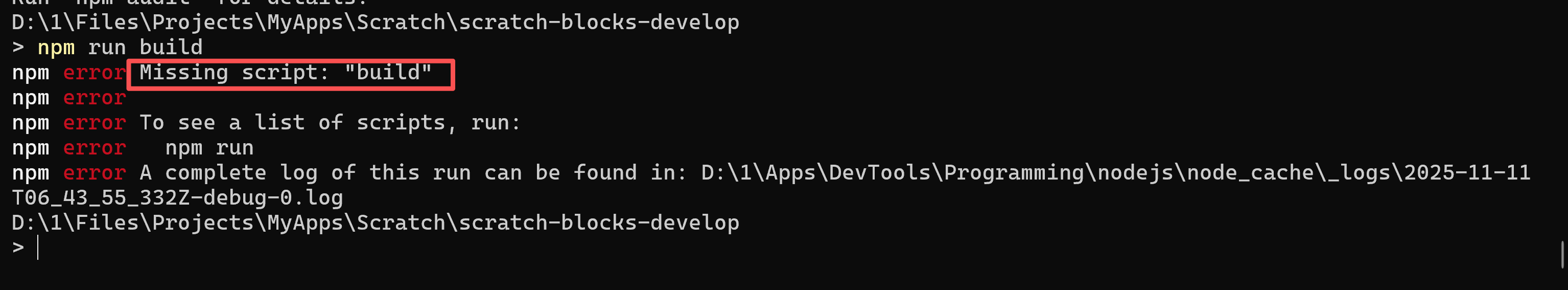 `scratch-l10n`是有build命令的,而`scratch-blocks`是没有的,唯一相关的命令是`prepublish`。