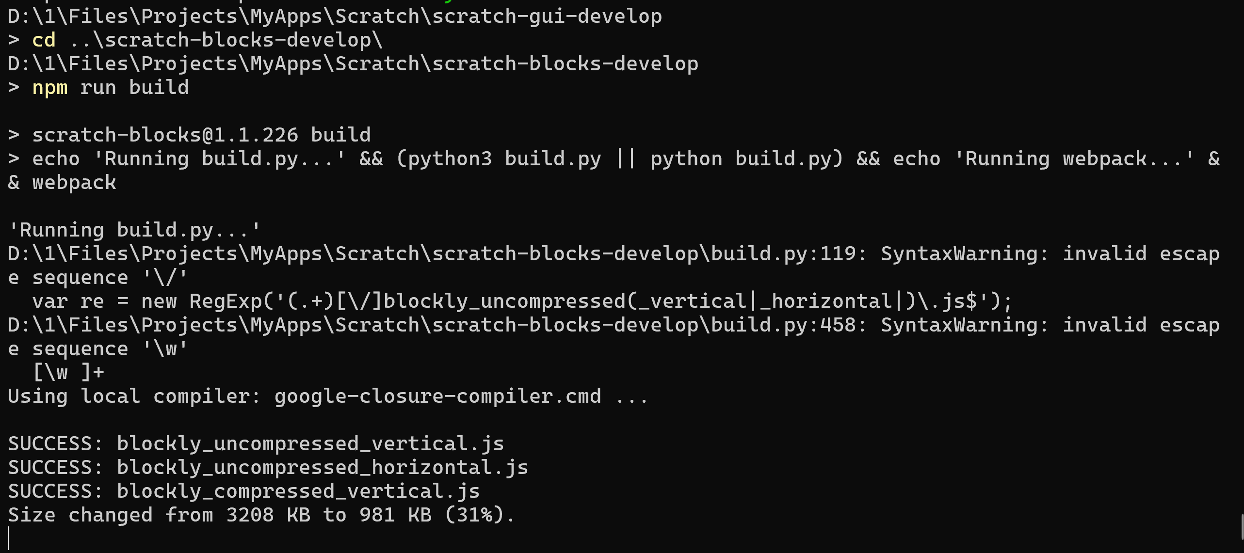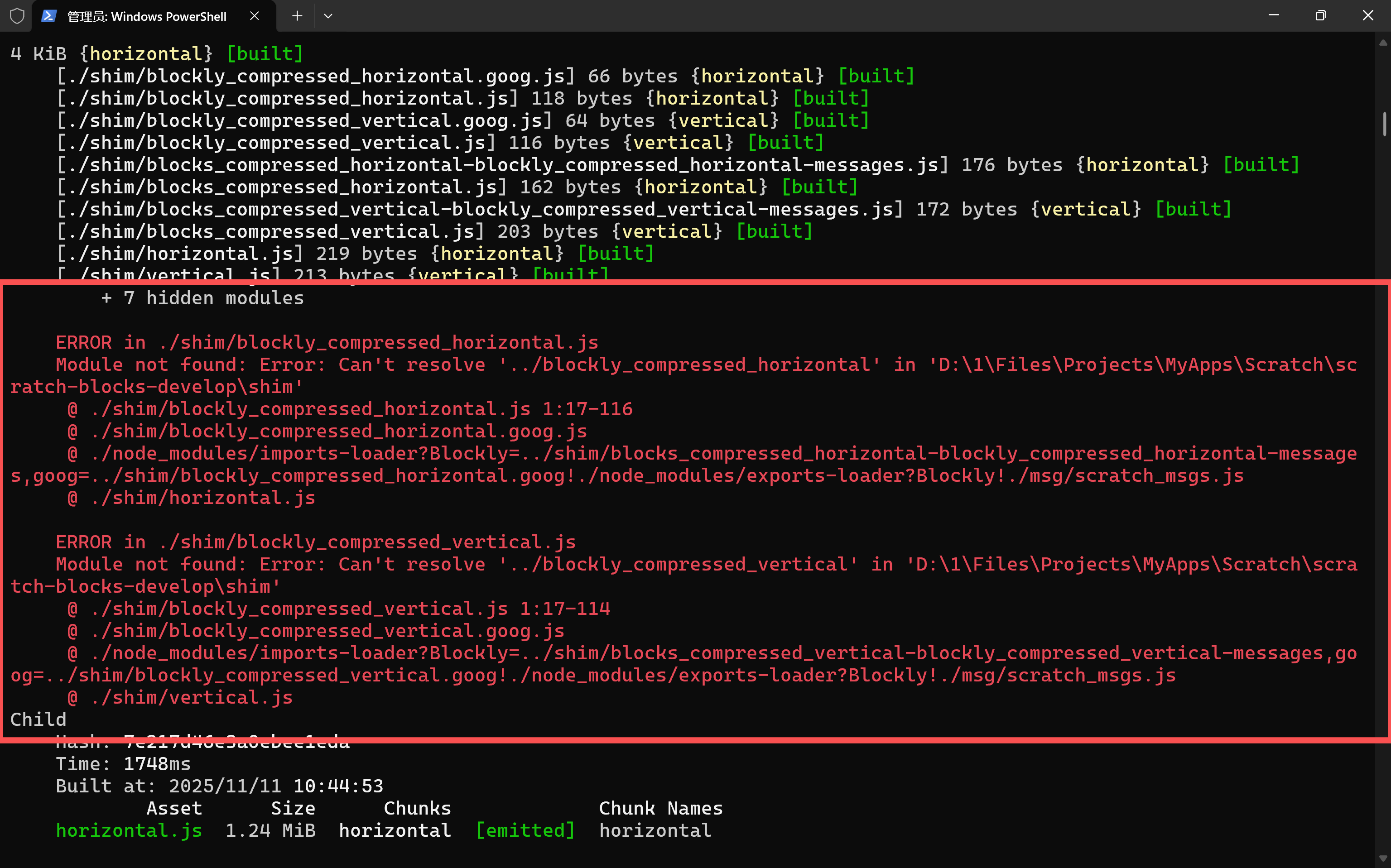 2. 部分构建成功 :尽管有错误,部分文件如 blockly_uncompressed_vertical.js 仍然成功生成