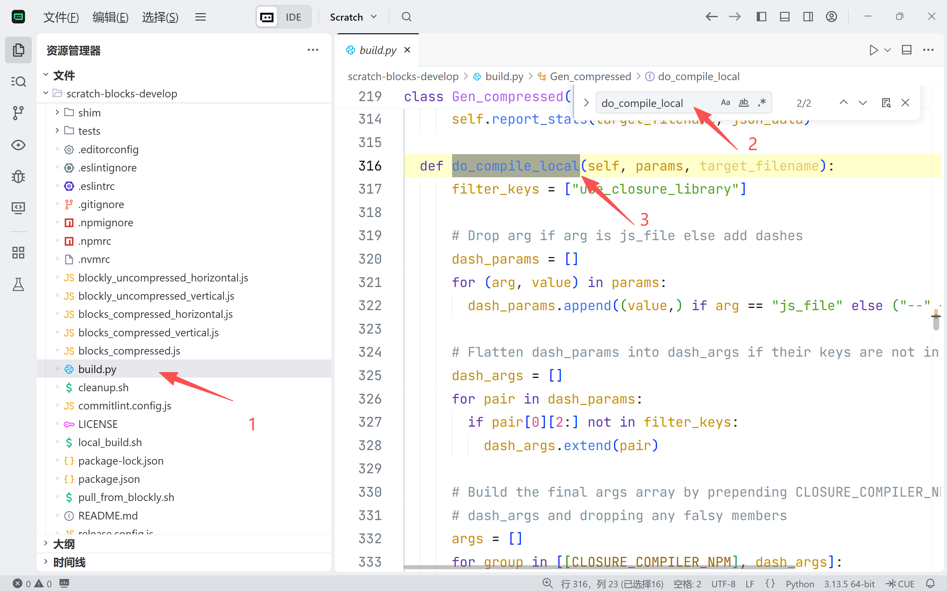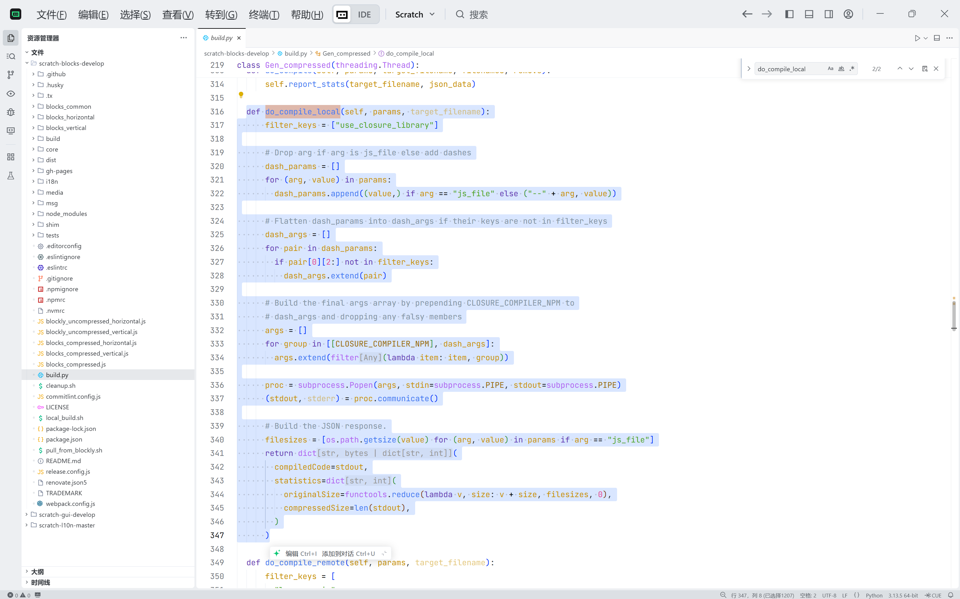 在`scratch-blocks-develop\build.py`文件中查找`do_compile_local`,找到函数定义。
