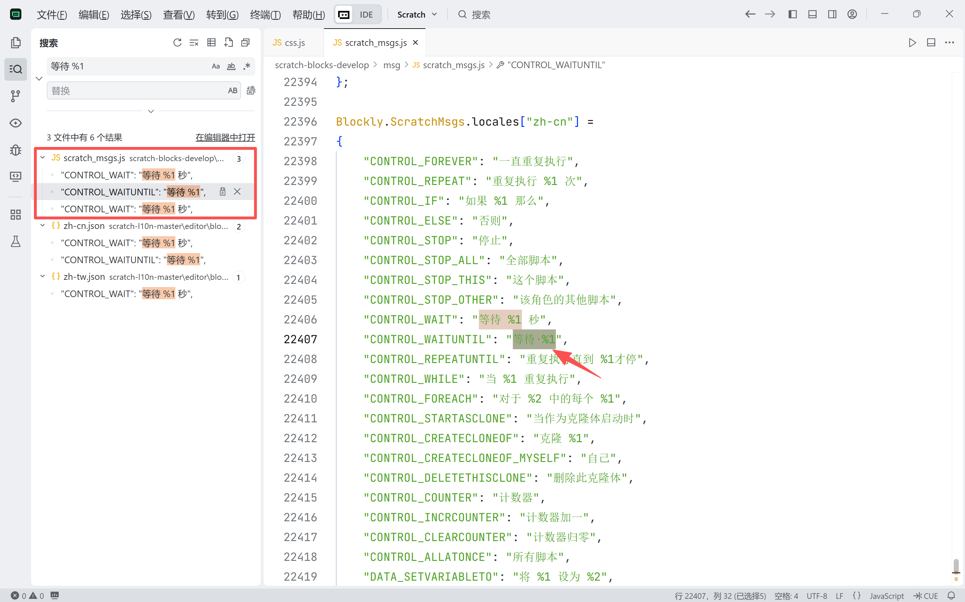 查找本地`scratch-blocks`中的“等待 %1”。(就在“重复执行直到”的上一行)