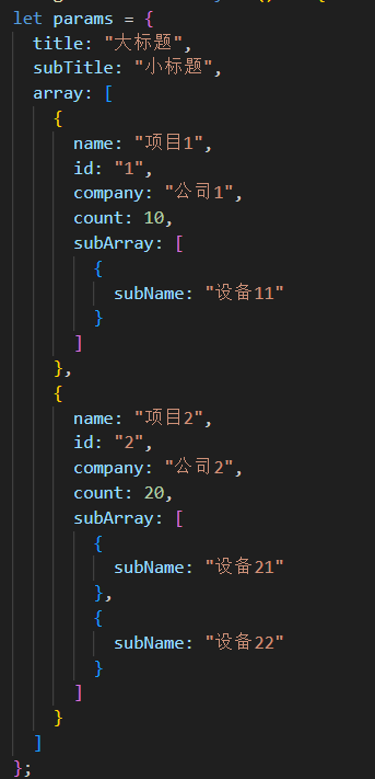 ①、我们写了两个字段title与subTitle并用英文花括号{}包裹起来,花括号{}是索引逻辑,识别到{}会对数据进行替换。如果存在嵌套对象,我得建议是提出来,扁平化处理。