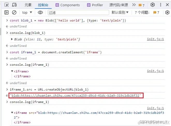 示例:以下实现了实例化了一个Blob对象并使用URL.createObjectUrl()方法将其转化为一个URL。