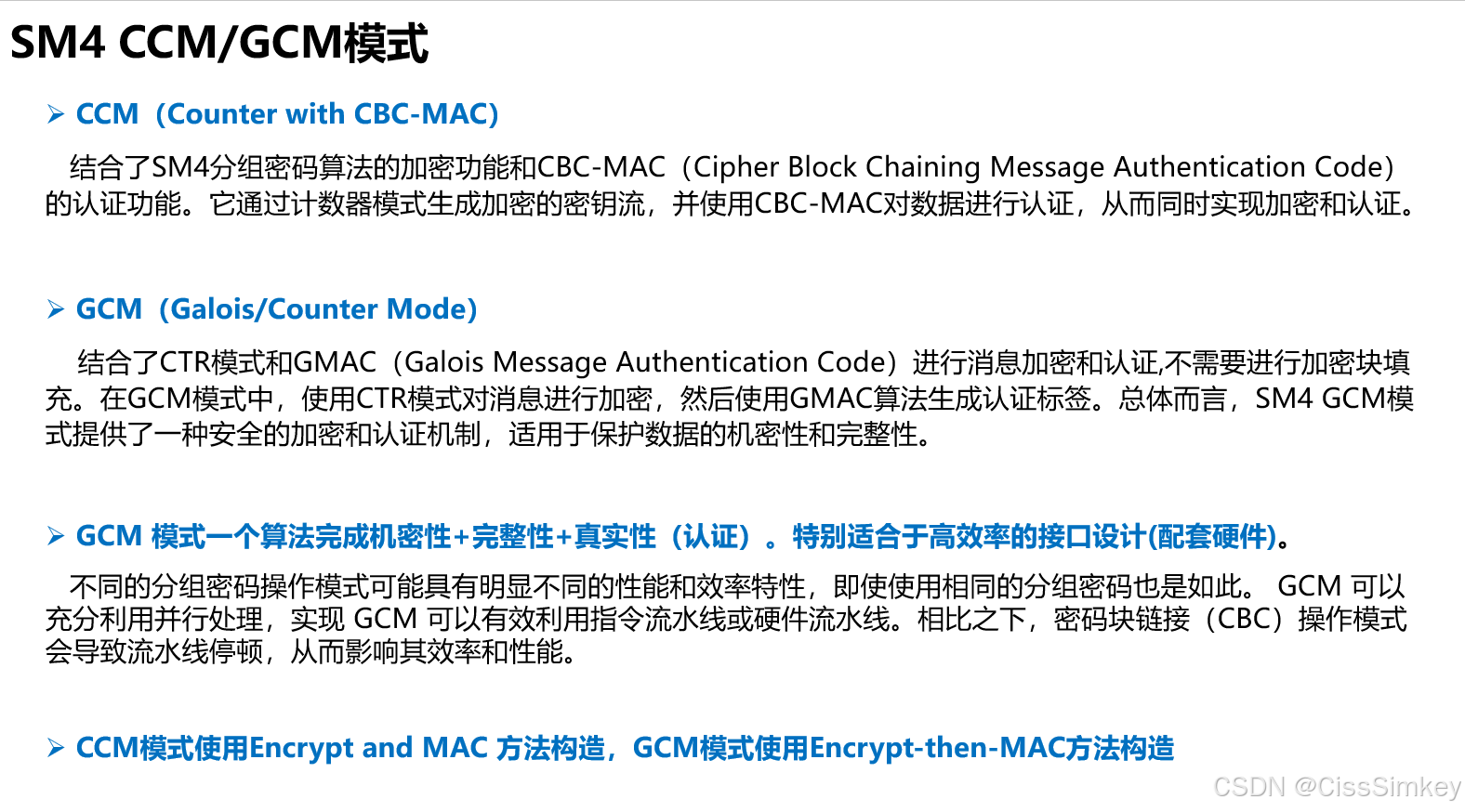 SM4/AES 的GCM和CCM模式就可以同时完成 机密性,完整性,真实性。