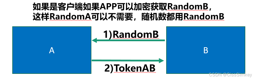 1.Random:B产生的随机数,A获取到B产生的随机数,再从A发送到B 【Random明文传递需要增加RandomA作为TokenAB的因子】