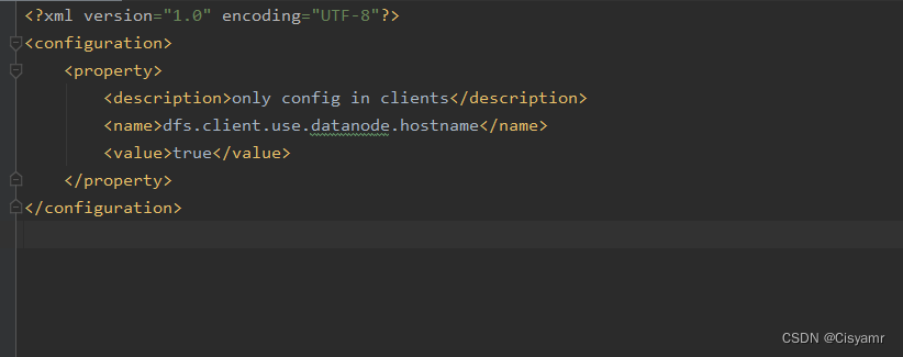 resources目录里创建hdfs-site.xml文件,允许客户端使用数据节点(因为本机外网访问私有云上的集群)