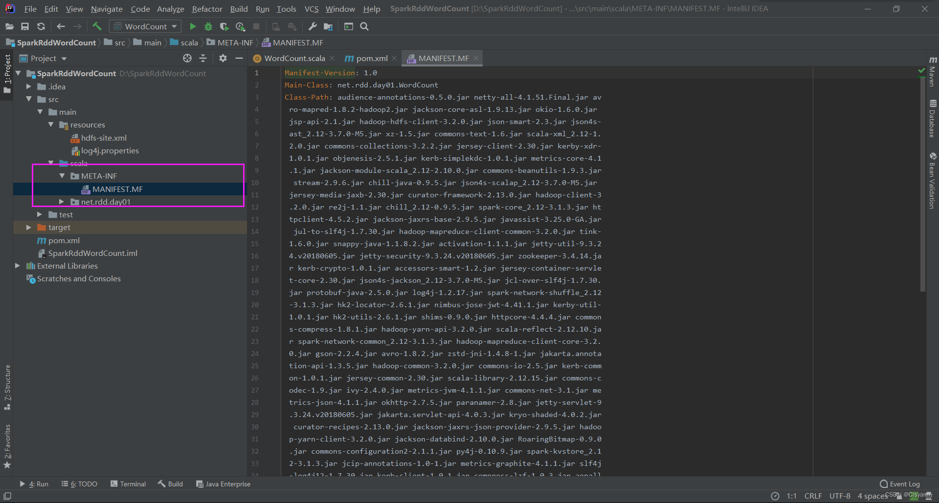 net.rdd.day01包,然后在包里创建WordCount单例对象