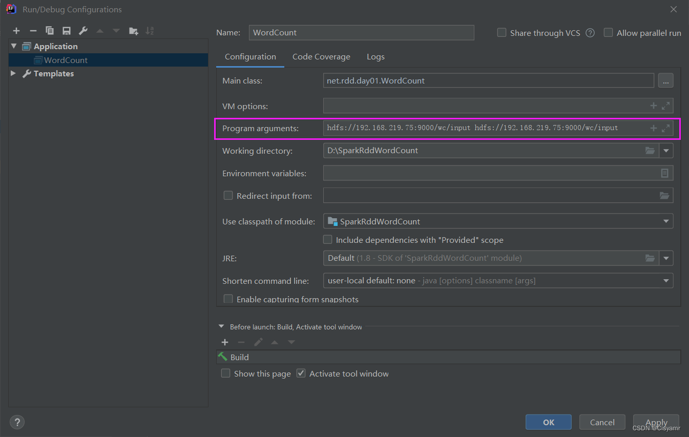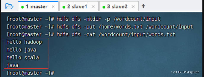 - hdfs://192.168.219.75:9000/wc/input:单词数据的来源路径。该路径下的所有文件都将参与统计。