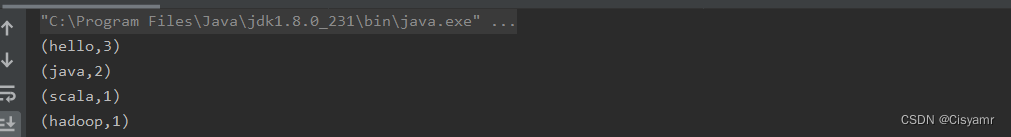 .reduceByKey(_ + _) // 按键进行聚合(key相同,value就累加)