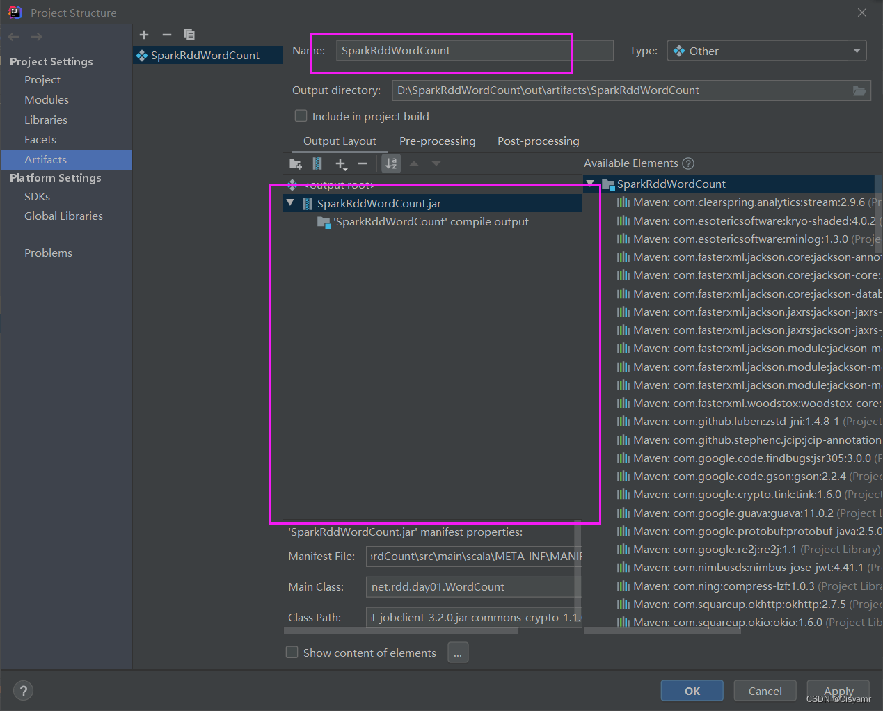 - –class:SparkWordCount程序主类的访问全路径(包名.类名)。