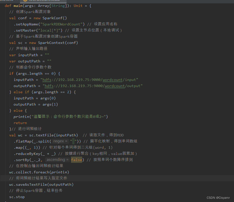 val outputPath = "hdfs://192.168.219.75:9000/wordcount/output"