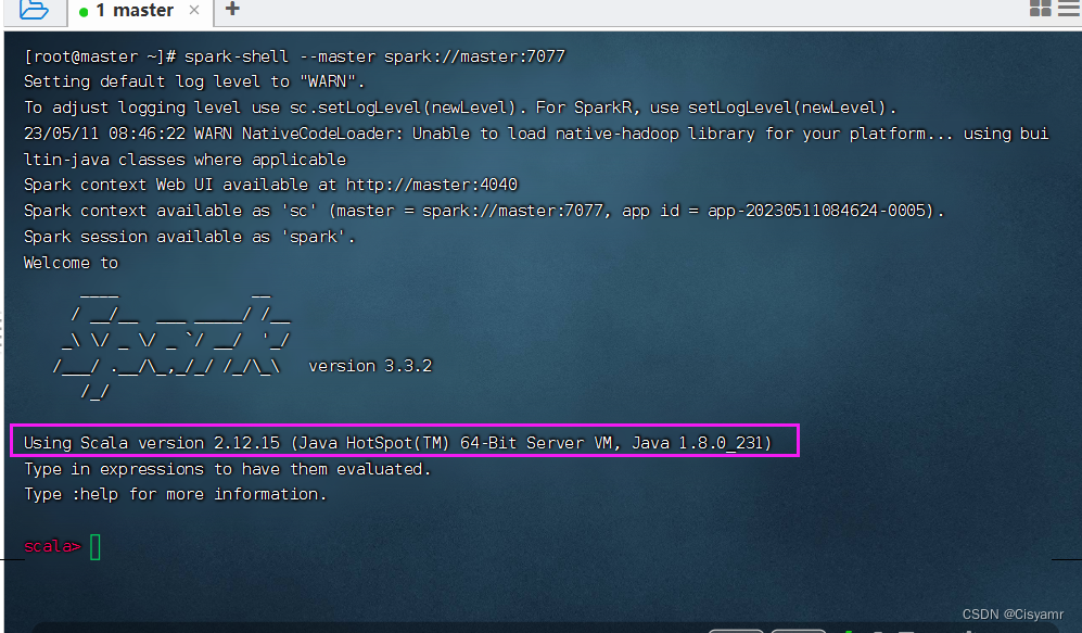 - Spark3.3.2用的Scala库是2.13,但是Spark-Shell里使用的Scala版本是2.12.15