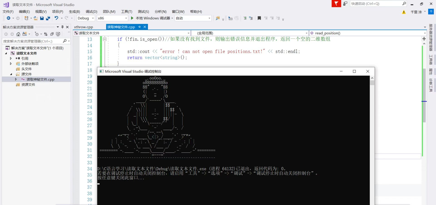 从文本文件 positions.txt 中读取神秘数据,并将数据打印到控制台上。