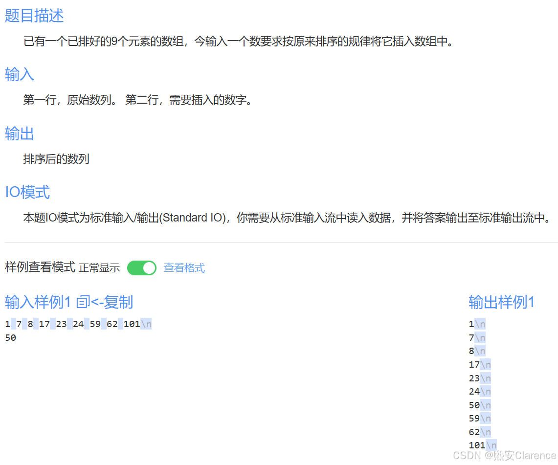 int a[10],n,k;//n为要插入的数,k记录插在数组第几个元素之前