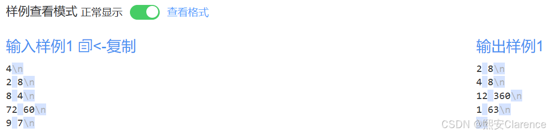 第n组测试数据的最大公约数 第n组测试数据的最小公倍数