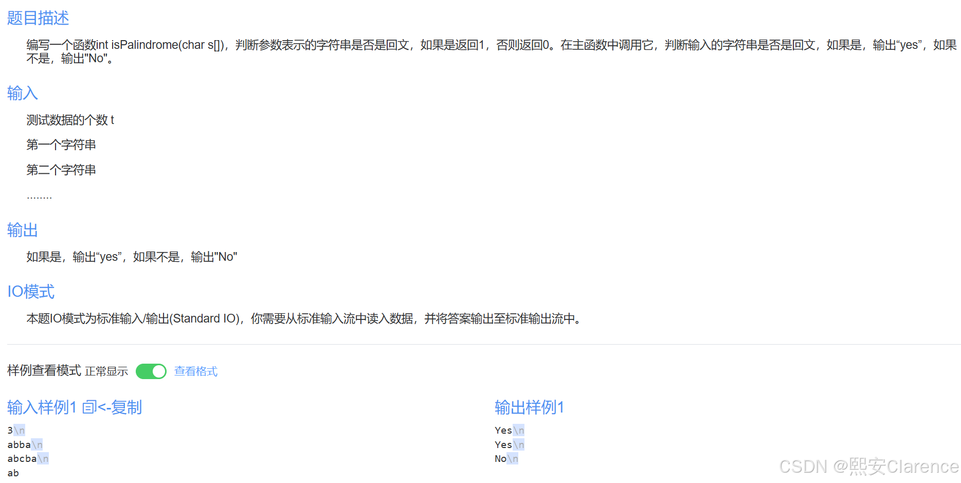 思路是在主函数中用gets()函数读入字符串,在回文判断函数中从字符串的两端向中间判断